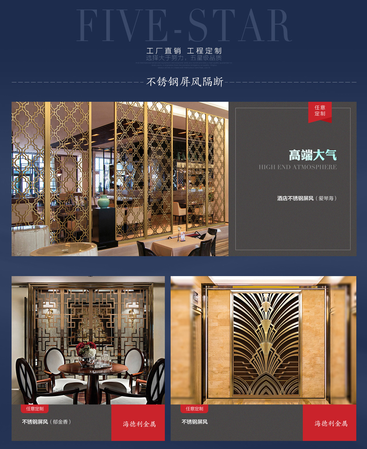 不鏽鋼屏風(fēng)加工製品定製廠家為您(nín)展示的是2022新款現代(dài)黃(huáng)古銅不鏽鋼屏風隔斷圖片尺寸價格說明(míng)定做服務。