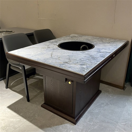 海德(dé)利火鍋家具為您(nín)展示(shì)的是火鍋店(diàn)時尚大(dà)理石帶抽屜電磁(cí)爐火鍋餐(cān)桌圖片尺寸價格說明定做服務。