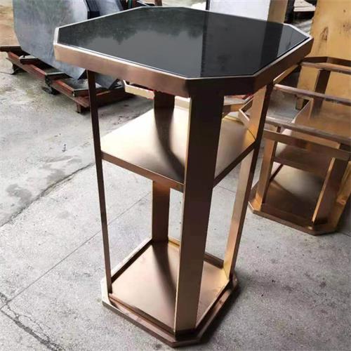 產品材質:此款酒吧吧台桌不鏽鋼散台桌子(zǐ)_慢搖吧高腳桌子采用不鏽鋼+大(dà)理石台麵