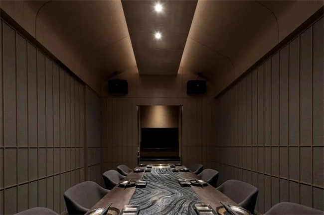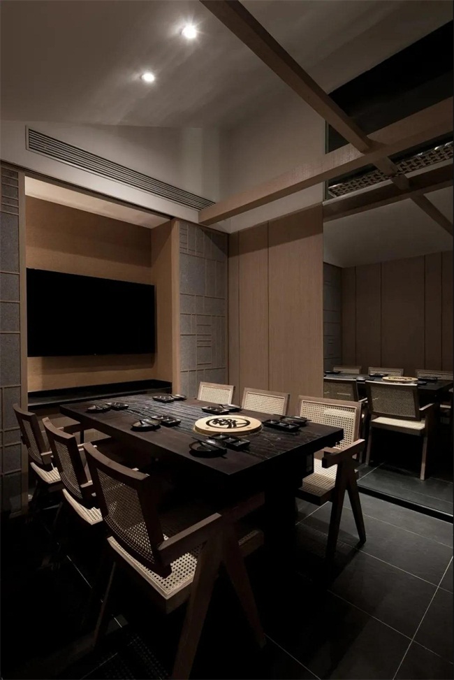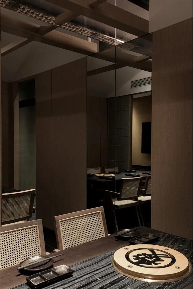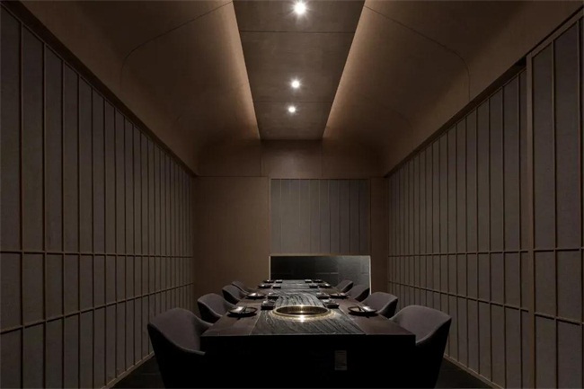 十人座位的日式包房,運用木質天花和紙拉門營(yíng)造日式的用餐環境,使整個(gè)空間顯(xiǎn)得寧靜而又溫馨(xīn)。