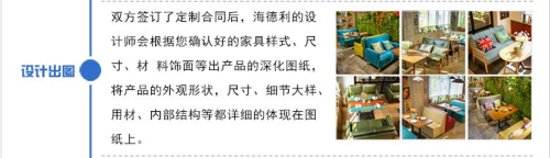 設計出圖 :雙方簽訂定製合同後,餐飲家具定製廠家海德(dé)利的設計師會根據您確認好的家具樣式,尺寸,材料飾麵等出產(chǎn)品的深化圖紙,將產品的外觀(guān)形狀,尺寸,細節大樣,用材,內部結構(gòu)等都(dōu)詳細(xì)的體現在圖紙上。