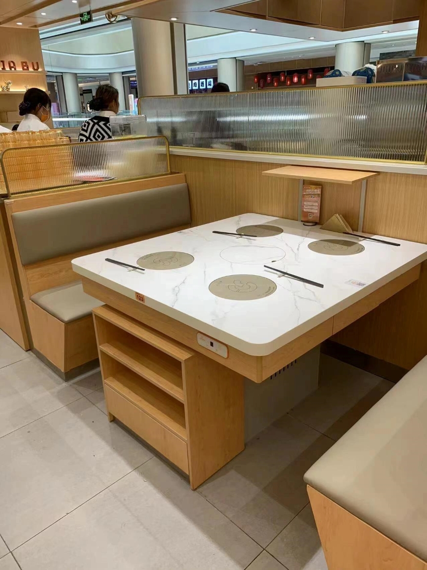 4.安全:考慮(lǜ)到火鍋(guō)使用時的安全性,這(zhè)些火鍋桌會(huì)配備(bèi)電磁(cí)爐或嵌入式燃氣(qì)爐,並有相(xiàng)應(yīng)的安全措施,如防溢邊緣和容(róng)易(yì)控製的火力調節。