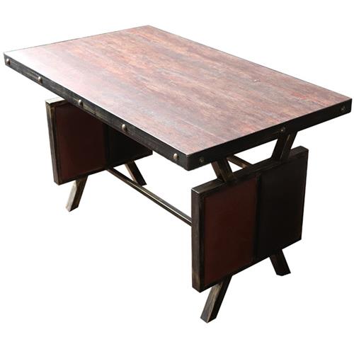 仿古五金防(fáng)火板桌麵_五(wǔ)金鐵釘圍邊_厚實鐵板特色工業風餐(cān)桌