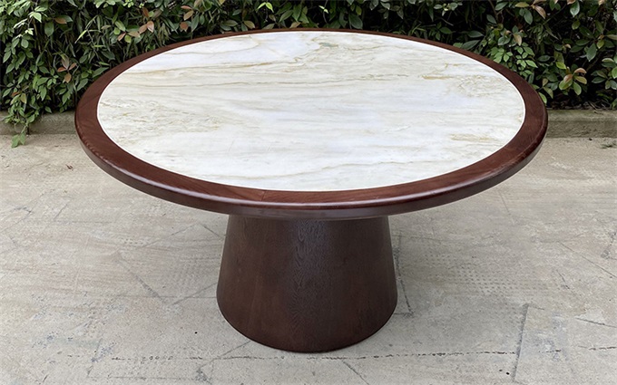 此款主題餐廳大理石青花瓷岩板實(shí)木餐桌包廂大圓桌產品特點(diǎn)說明: