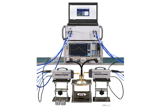 開放同軸諧振腔測試法根據用(yòng)戶需求可選用0.8GHz/2.45GHz/4.2GHz/6GHz/7.6GHz、1GHz/3GHz/5GHz/7GHz/9GHz、2GHz/6GHz/10GHz/14GHz/18GHz三種規格腔體進行測試。開放同軸諧振腔操作方便,樣品要求低,僅需將樣品加工成長(zhǎng)寬尺寸(cùn)1cm見方以上、表麵光滑的方(fāng)片即可,樣品放置在諧振腔頂(dǐng)端。該方法特點(diǎn)是(shì)測試方便,可在一定頻帶內完成多(duō)個頻點的高精度(dù)測試。