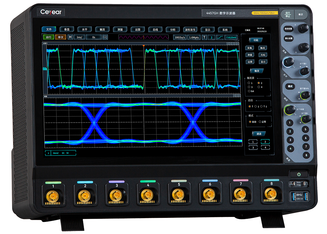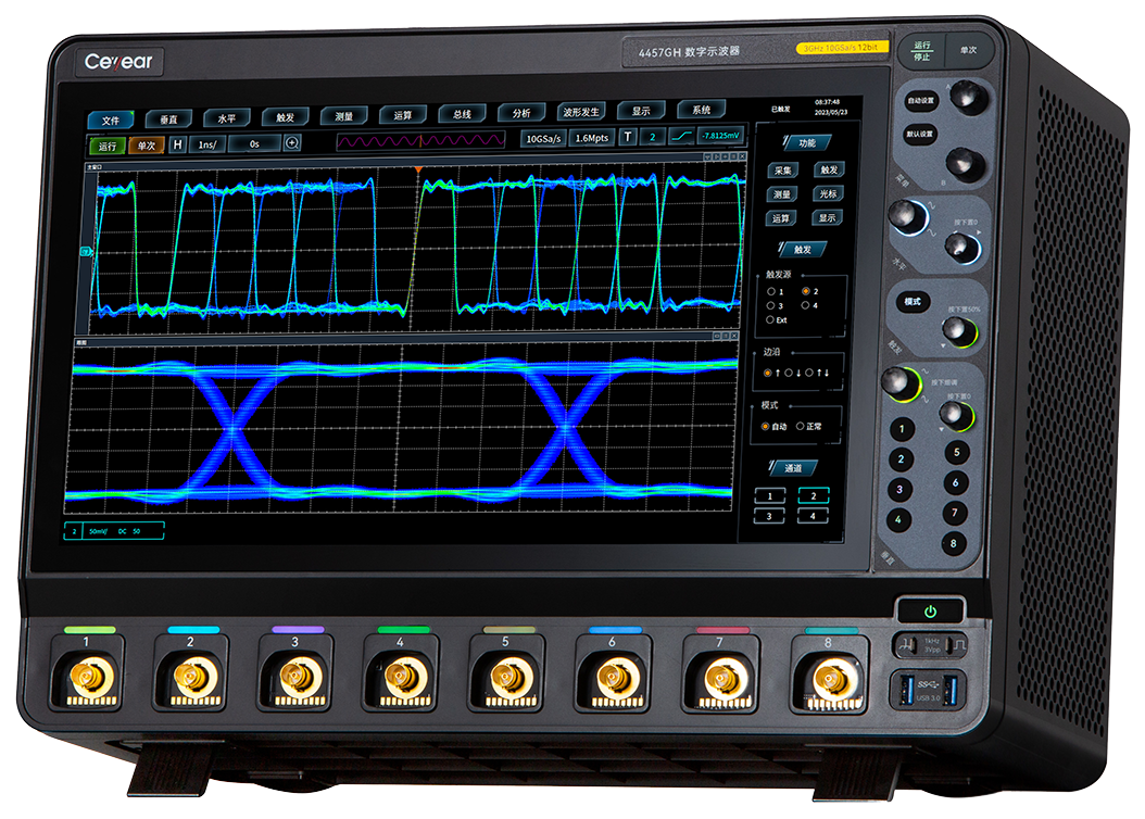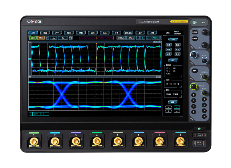 4457H係列數字示波器集(jí)示波器、邏輯分析儀、函(hán)數發生(shēng)器(qì)、總線分析儀、實時頻譜分析儀及數字電壓表等多種儀器於一體,具(jù)有波形自動設置、參數自動測量與統計、光(guāng)標測量、數(shù)學運算、FFT頻譜分析、波形錄製與回放、串行總線分析、極限模板(bǎn)測試、功率測量與分析、波(bō)特圖分析、眼(yǎn)圖及抖動分析等功能,支(zhī)持以太網程(chéng)控,方便集成開發使用。