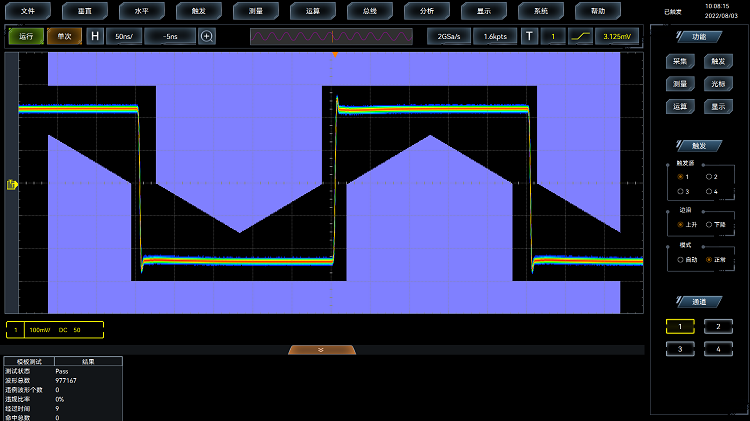 波形錄製與回(huí)放功能用於波形的實時錄製,回放查看波(bō)形細節;極限模板測試內置標準模板,用戶也可進行(háng)模板自定義(yì),進行通過性測試。