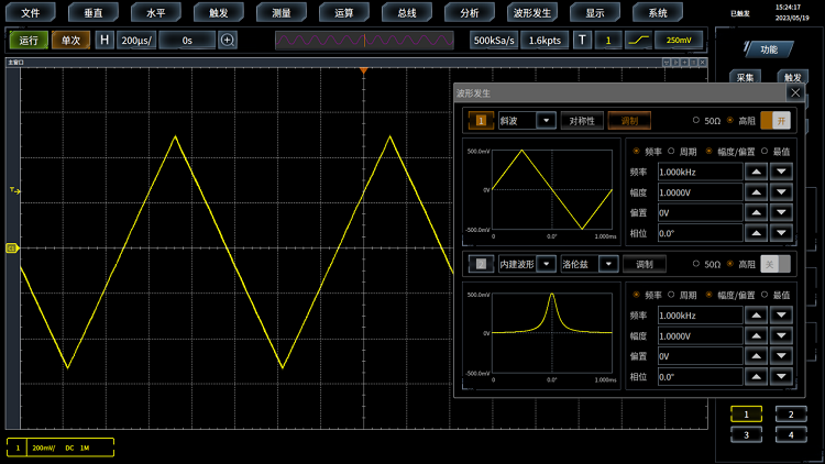 函(hán)數發生器提(tí)供了高達50MHz的正弦波(bō)形(xíng)輸出(chū),還包括方波、斜波、脈(mò)衝、直(zhí)流、噪聲(shēng)、任意波、SinX/X、指數上(shàng)升/下降、高斯、洛倫(lún)茲曲線、半正矢曲線、心電圖等波形,此外還支持FM、AM、FSK等調製波(bō)形的輸出。