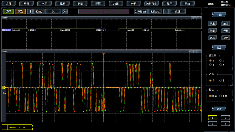 示波器(qì)的波形捕獲率高達70萬個波形/秒(miǎo),20GSa/s的采樣率,極大提高了毛刺和偶發事件捕獲的概率,讓您在更長的采集時間內查看到(dào)更多的波形細節。