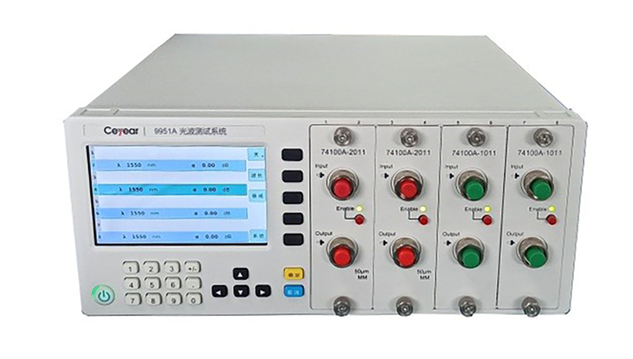 9951A是麵向光電行業客戶開發的一款模(mó)塊化(huà)測試儀器(8個槽位),可根據客戶的測試需求選配光衰(shuāi)減器、光功率計、光開關、光擾偏器等測試功(gōng)能模塊,搭建(jiàn)特定的多通道測試方(fāng)案,高(gāo)效率地完成光波測試任務(wù)。