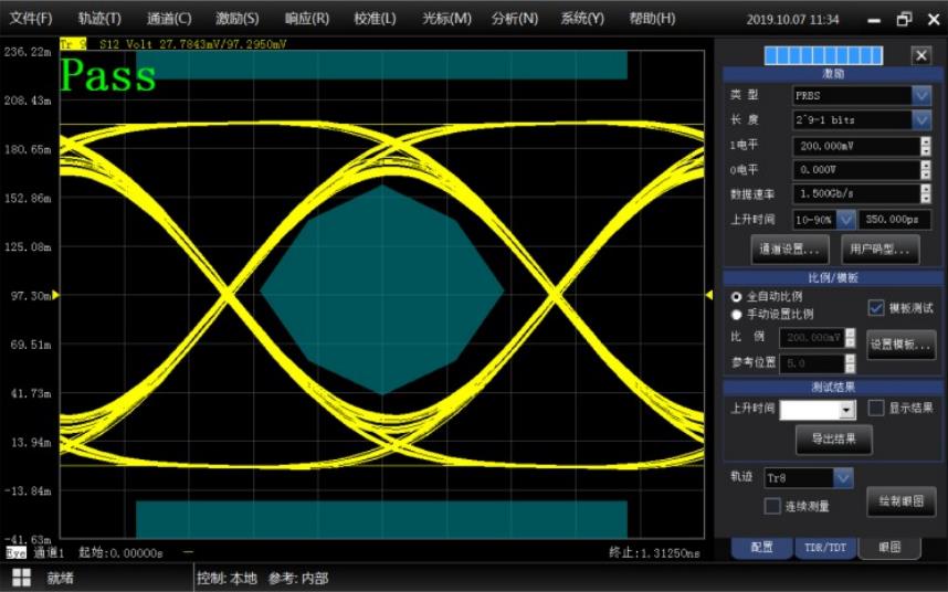 3671係列矢網的高級時域分析選件提供基於S參數的(de)虛擬眼圖生成及分(fèn)析功能。仿真碼型輸出單元用於(yú)產生0、1變化的數據位,把仿真碼型和被測件的時(shí)域衝激響應進行卷(juàn)積,疊加後得到虛擬眼圖。