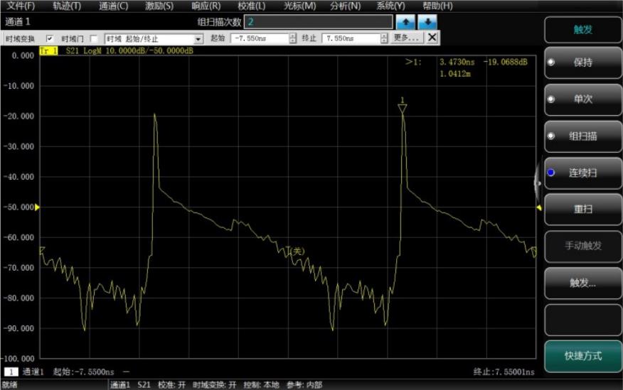 3671係列矢量網絡分析儀可通過配置時(shí)域測量選件實現測量結果頻域和時域之間的切換,用以確定(dìng)器件、夾具或者電纜中的不連續點位置,實現故(gù)障點精確(què)定位。
