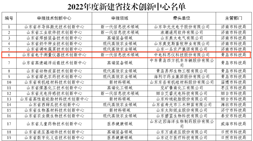 近日,山東省科學(xué)技術廳發布《關於批準(zhǔn)建(jiàn)設2022年山東省(shěng)技術創新中心的通知》,電科思(sī)儀電子測量(liàng)儀器技術創新中心獲批籌建。