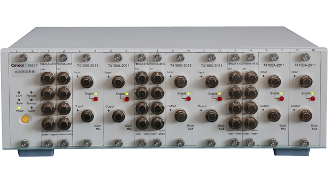 9951A/Y光(guāng)波測試平台是麵向光電行業用戶開發的一款模塊化、多通道測試儀器,主(zhǔ)機(jī)具有8個或(huò)18個模塊插槽,可根據需要自由選擇光功率計、光(guāng)衰減器、光開關、光擾偏器(qì)等不同模塊(kuài),實現光功(gōng)率測量、光(guāng)功率衰減(jiǎn)、光路切換、光擾偏等功能,各模塊可(kě)插拔互換,便於快速搭建測試係統。產品具(jù)有豐富的外部通信接口,包括LAN、RS232C和USB接口,其中LAN接口最大支持64路客戶端共同訪問,能夠滿足(zú)各種程控和數據通信(xìn)需(xū)要(yào)。通(tōng)過搭配(pèi)各類高性能光電測(cè)量模塊,9951A/Y光波測試平台(tái)可以靈活、高效、可靠的完成(chéng)測試任務,在光無源器件、光有源(yuán)器件以及光模塊、光組(zǔ)件的(de)研發、生產等領域,提(tí)高用戶的(de)測試(shì)效率,降低測試成本。