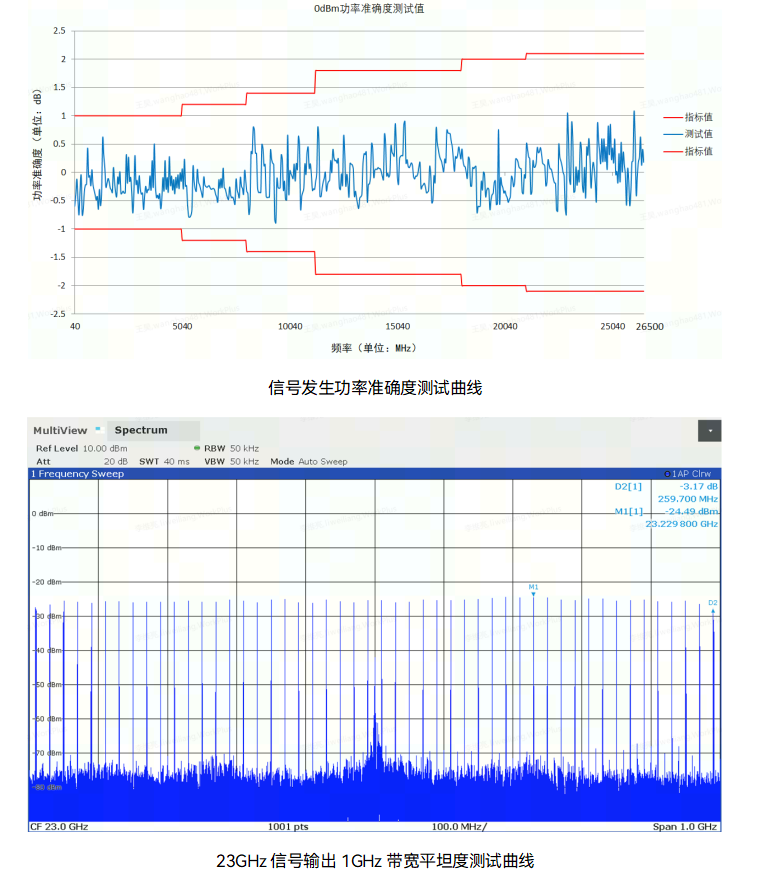 23GHz信號輸出1GHz帶寬(kuān)平坦度測試曲線