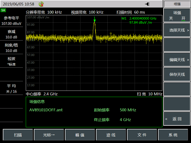 4957B/D/E/F射頻/微波綜(zōng)合測試儀係列配(pèi)合相應的測試(shì)天線還可進行場(chǎng)強測量,廣泛應用於空間電磁環境監測和無線電管理。支持用戶天線(xiàn),允許(xǔ)用(yòng)戶定義自(zì)己的(de)天線。