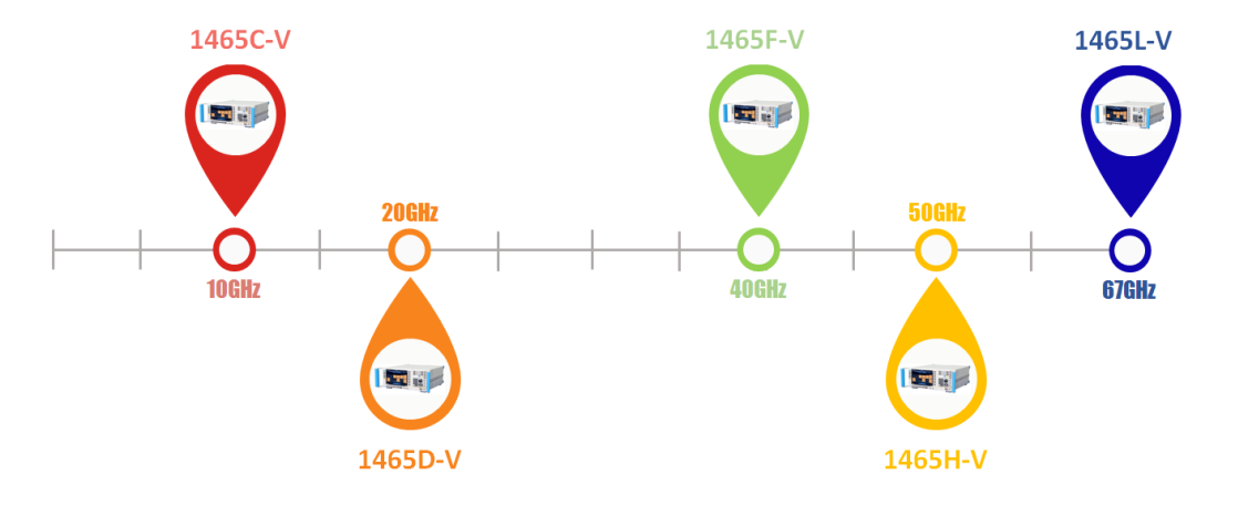 1465-V係列(liè)信號(hào)發生器(qì)能夠根據不同領域用戶的具體需求,提供頻率上(shàng)限分別覆蓋10GHz/20GHz/40GHz/50GHz/67GHz的多種測試方案(àn)。尤其是1465L-V型信號發生器100kHz~67GHz的寬頻段覆蓋的特性可滿足絕大多數用戶的測試需求。