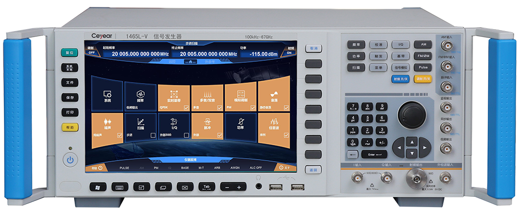 1465-V係列信號發生(shēng)器在滿足寬波段大帶寬的條(tiáo)件下,可為用戶提供樣式(shì)齊全的純淨的模擬、矢量調製信號和編輯靈活(huó)的任(rèn)意波調製信號。是(shì)通信、導航、元器件(jiàn)等多領域各種用頻設備性能測(cè)試的理想選擇。