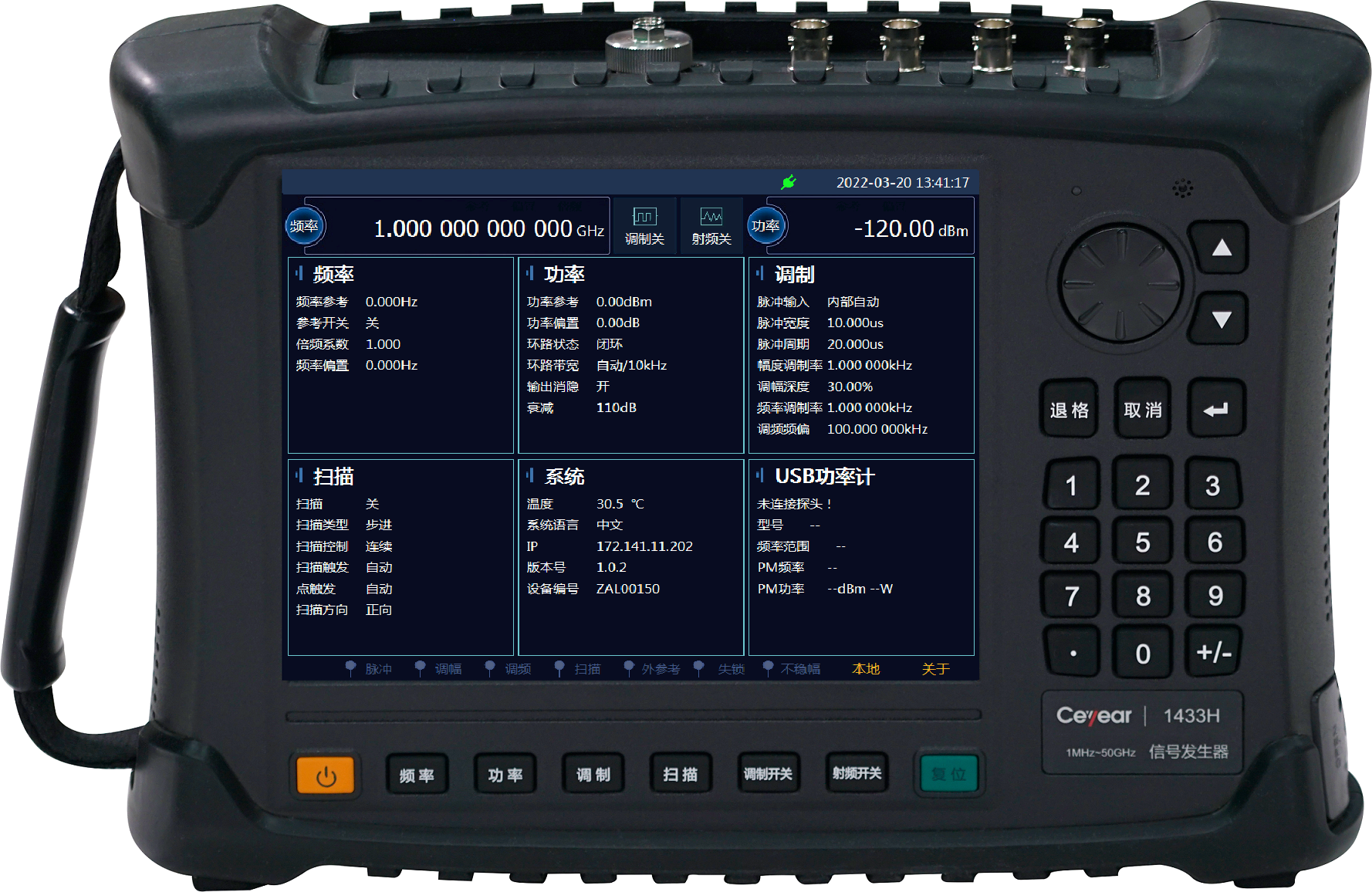 1433係列信號發生器是中電科污草莓樱桃丝瓜秋葵榴莲黄瓜白狐科技股份(fèn)有限公(gōng)司專為外場測試設計(jì)的一款手(shǒu)持(chí)式儀器,具有連續波信號輸出、頻率/幅度/脈衝多種調製、大動態範圍(wéi)幅度調節、步進/列表掃描等功(gōng)能,采用8.4寸大屏幕液晶及電容觸摸屏一體(tǐ)化設計,方便(biàn)用(yòng)戶操作。