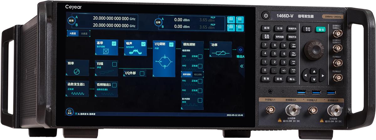 麵向移動通信基站或終(zhōng)端研(yán)製和生產(chǎn),以及移動通(tōng)信設備入(rù)網驗證和核準中(zhōng)必須的(de)射頻一(yī)致性測試,Ceyear 1466-V係列信號發生器通過內嵌包含5G NR在內的600多種TestModel/FRC,支持標準協議信號一鍵模擬。
