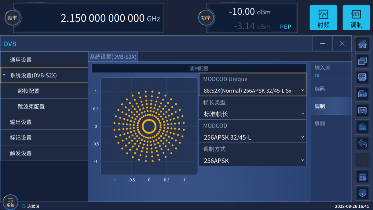 多達30多種數字標準調製信(xìn)號(PSK、FSK、QAM、APSK)的(de)產生,囊括了數字通信所有重要頻段和調製樣式。