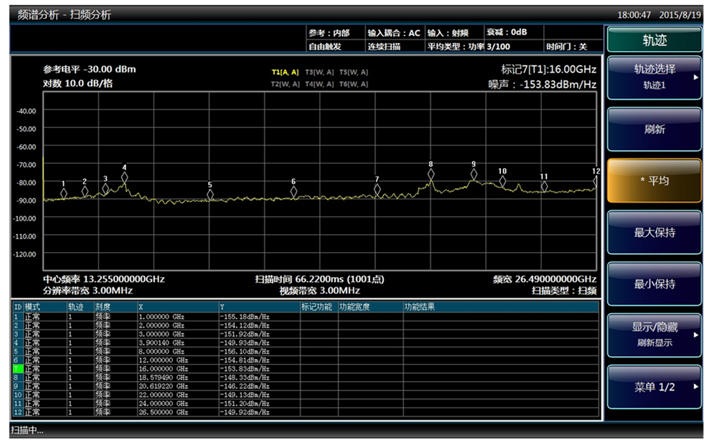 26.5GHz顯示平均噪聲電平-141dBm/Hz,配(pèi)置前放後典型值為-160dBm/Hz