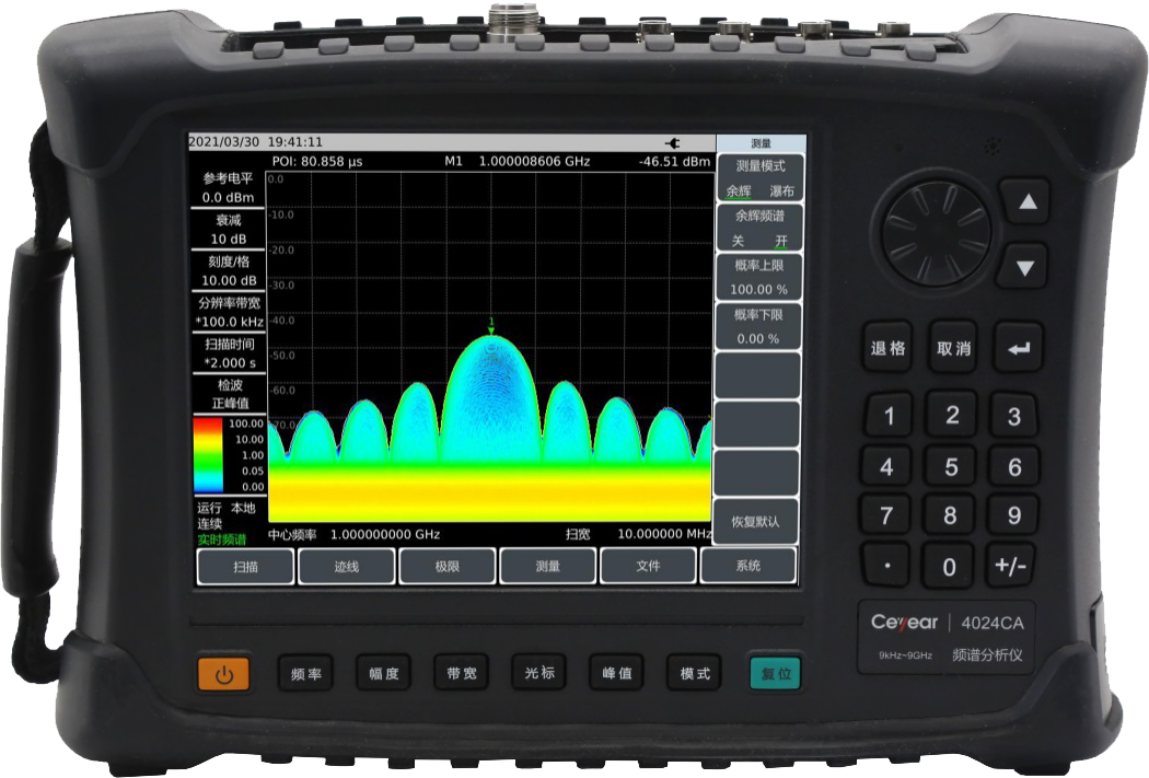 4024CA頻譜(pǔ)分析儀(yí)可應用於移動通信、無線通信、衛星(xīng)通信等設備的現場調試與安裝維護、無線通(tōng)信信號解調分析、幹擾(rǎo)源測向與地圖定(dìng)位、寬帶調製或瞬變信號(hào)的測試分析等領域,可為(wéi)用戶的外(wài)場頻譜測試提供比較完善的解決方案。