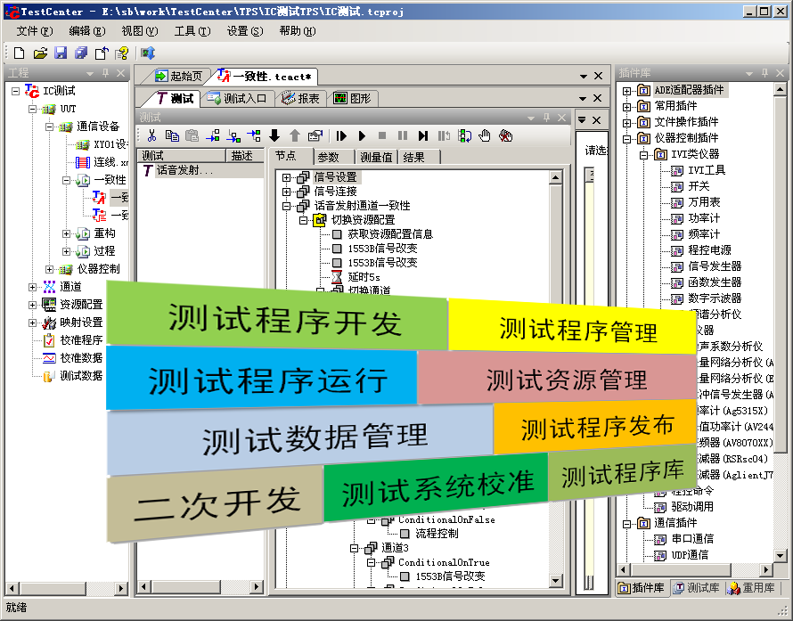 TestCenter軟件平台為用戶自動測係統軟(ruǎn)件的研製提供立(lì)即可用的完整解決方(fāng)案,它提供的工具集合涵蓋了自動測試係統軟件的通用(yòng)基礎功能,包括測試程序開發、測試程序執行、測試資源管理、測試(shì)數(shù)據管理、測試(shì)軟件發布等。